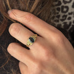 Le saphir teal est une pierre rare, prisée pour ses reflets changeants entre le vert profond et le bleu encre, selon l’angle et la lumière. Originaire de gisements éthiques soigneusement sélectionnés en Australie, ce saphir allie la noblesse d’une gemme ancestrale à une teinte contemporaine et envoûtante, très prisé de nos jours. Son éclat unique confère à la bague un caractère magnétique et poétique.