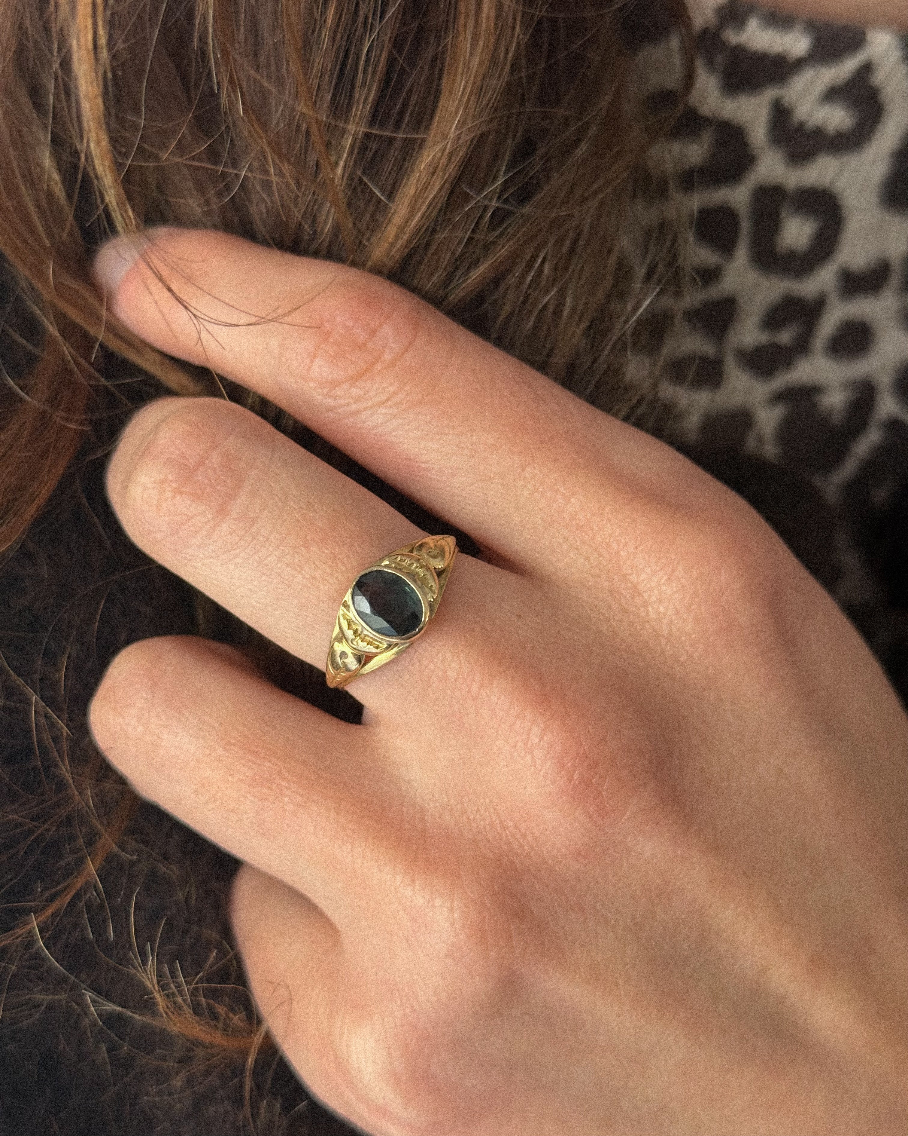 Freya est une pièce unique, précieuse à plus d’un titre : par son histoire, son travail d’orfèvrerie, et le choix exigeant de sa pierre. Elle s’adresse à celles qui aiment les bijoux anciens restaurés avec respect, et qui recherchent une beauté singulière, à fleur de peau.