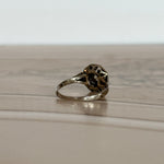 La monture godronnée, sculptée avec précision, prolonge le jeu des formes jusque sur le doigt. C’est un bijou solide, mais sans lourdeur, un équilibre rare entre caractère et élégance. Tout dans cette pièce est pensé pour durer, tant dans la structure que dans le style.