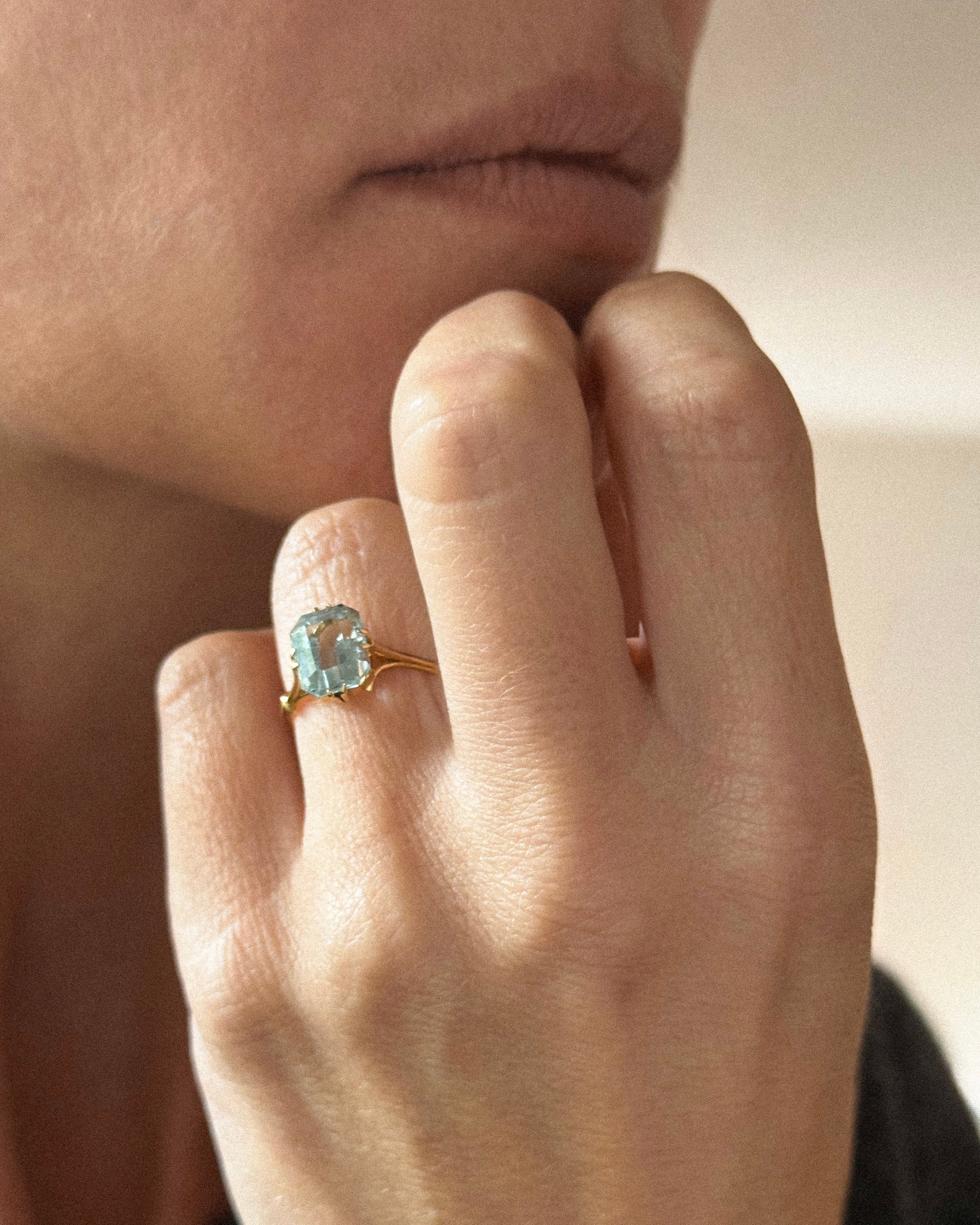 Choisir cette bague aigue-marine vintage, c’est adopter une signature stylistique et symbolique forte. Une pièce de collection qui conjugue équilibre des volumes, lumière maîtrisée et mémoire joaillière.