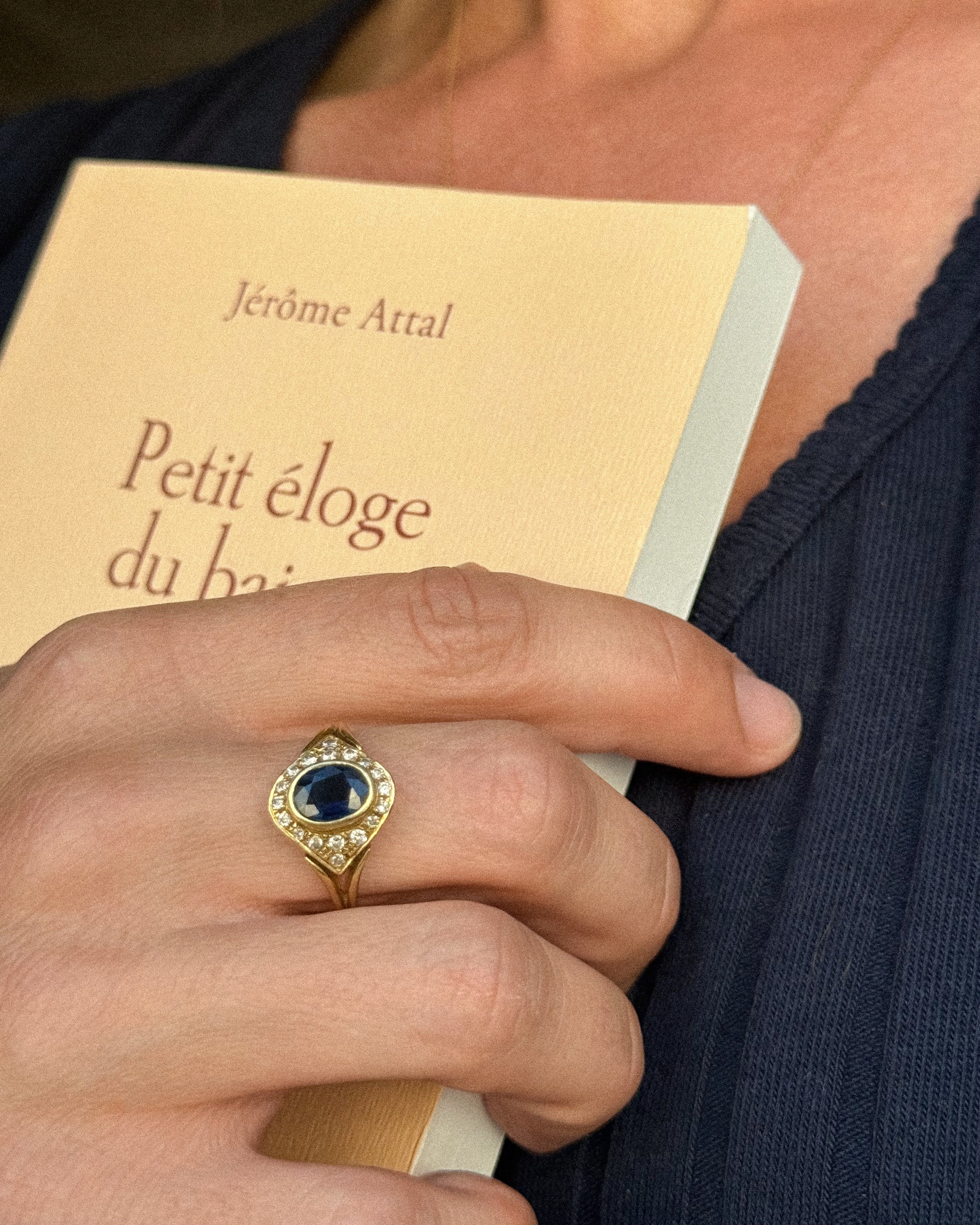 Une bague or 18 carats d’une élégance assumée, à retrouver dans notre sélection de bague saphir et diamants, conçue pour sublimer chaque geste avec discrétion et intensité.