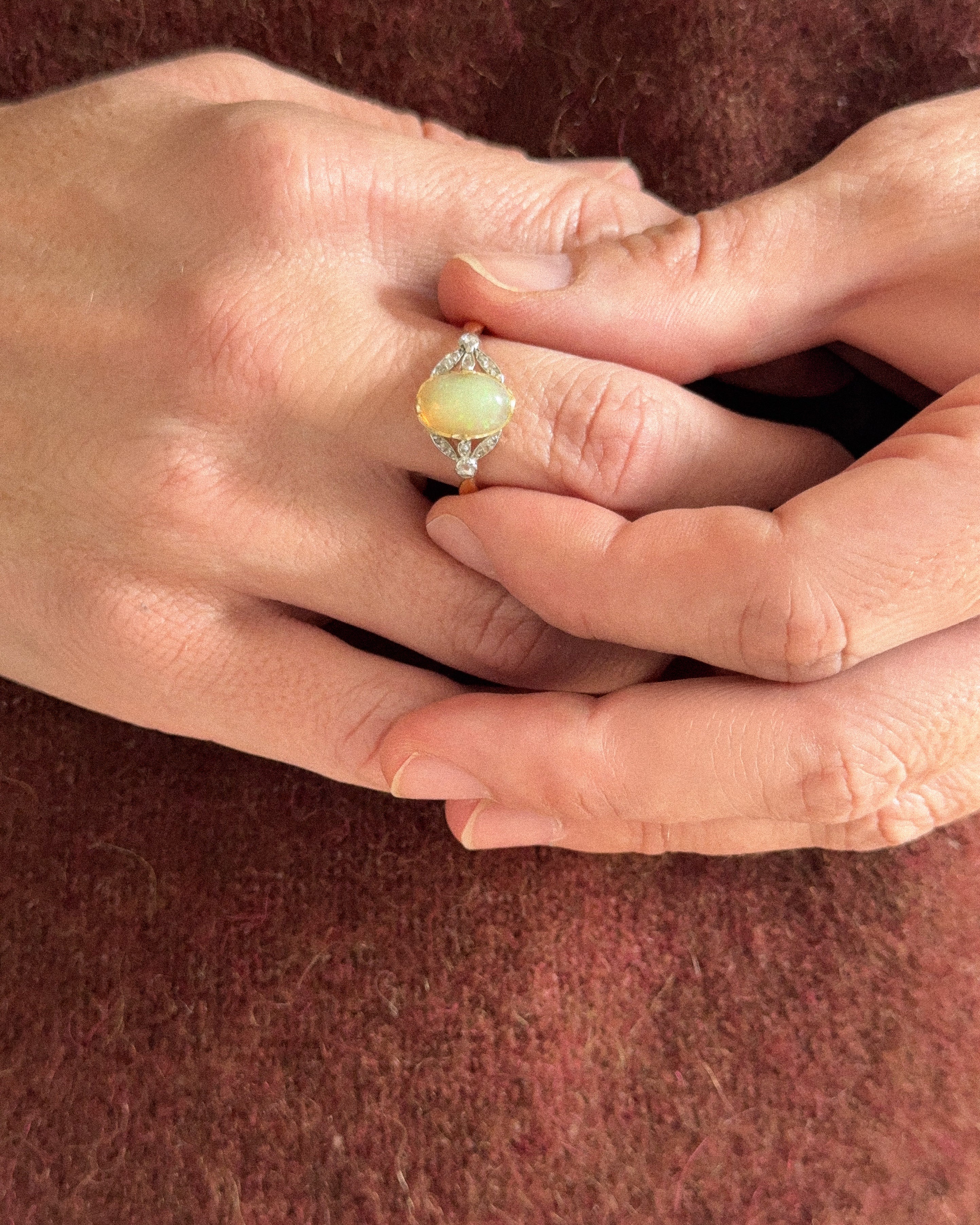 Pensée pour être portée aujourd’hui, elle incarne l’élégance d’un bijou ancien restauré. Une bague opale ancienne à la fois fidèle à son temps, et plus actuelle que jamais !