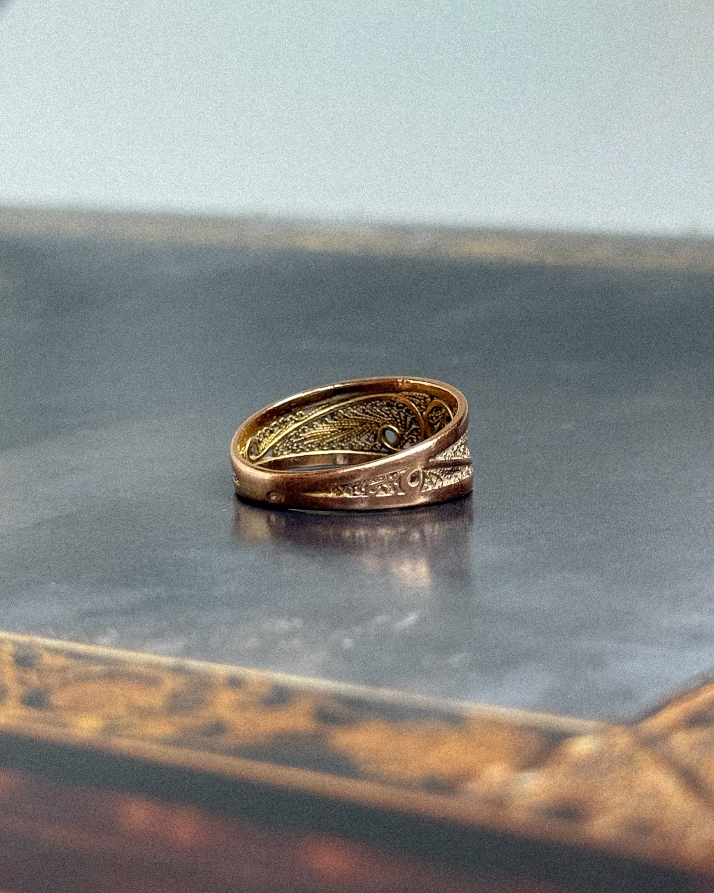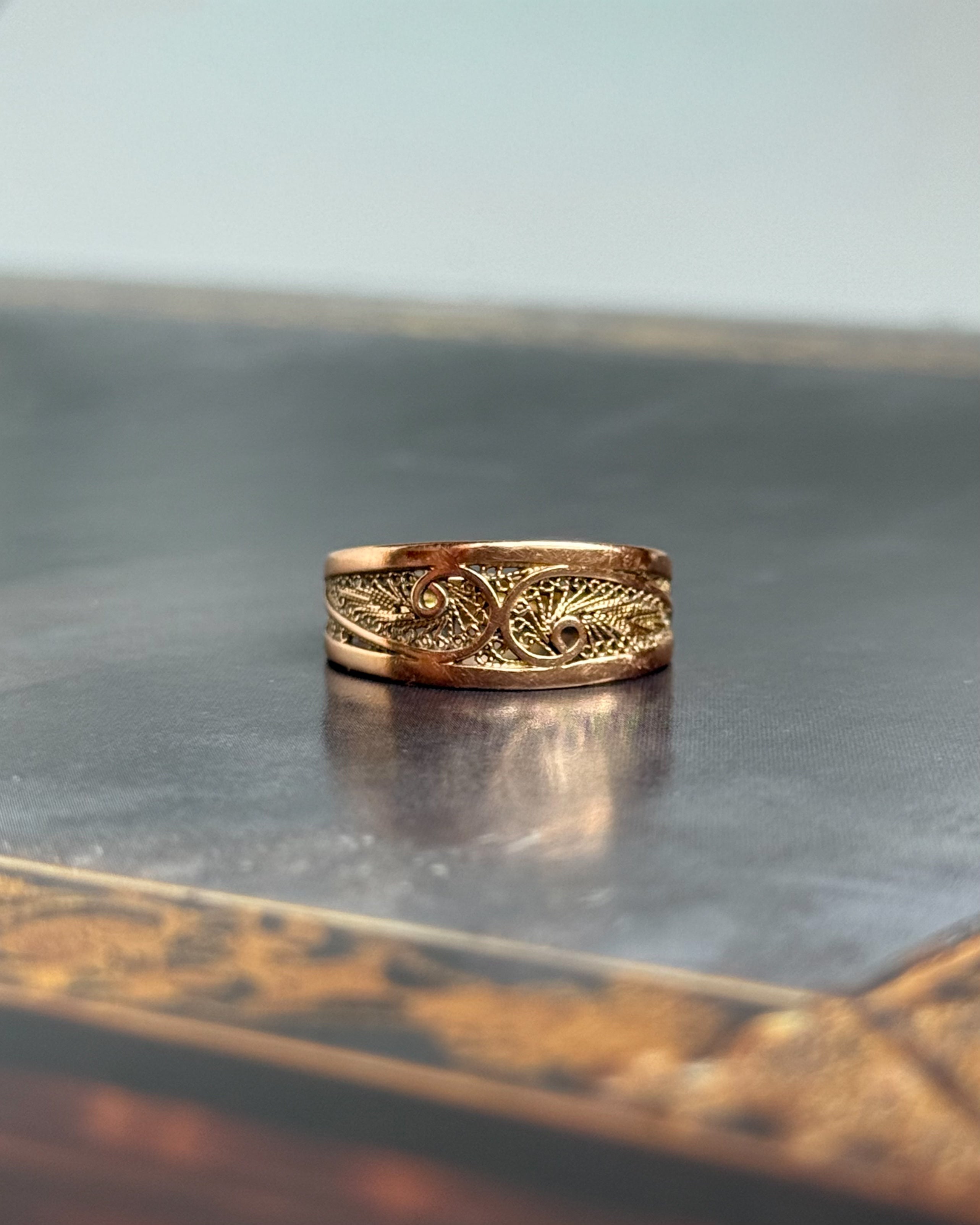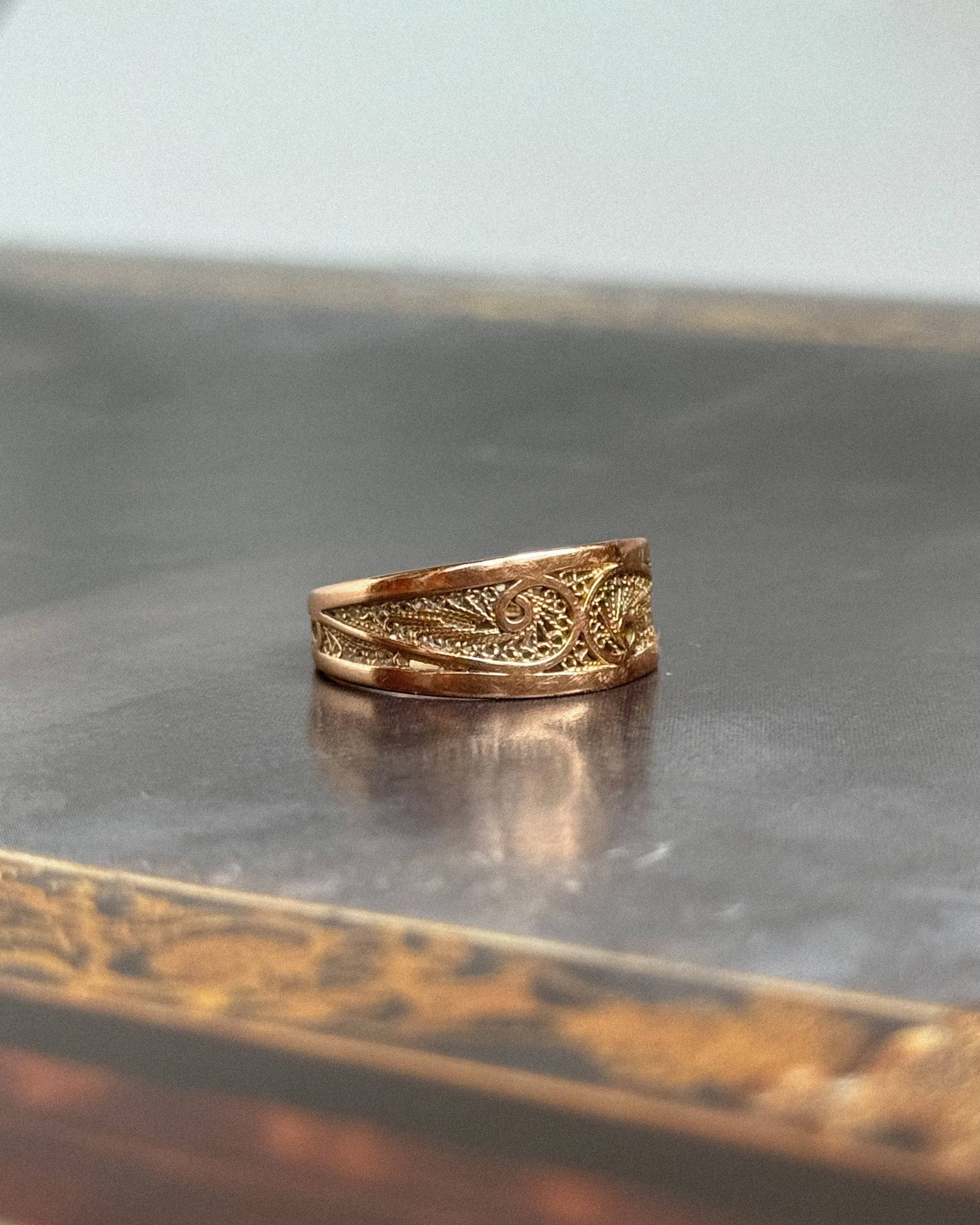 La bague ancienne or rose Olivia incarne l’élégance d’un geste artisanal oublié.