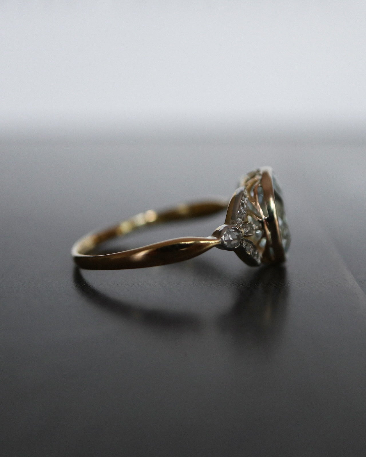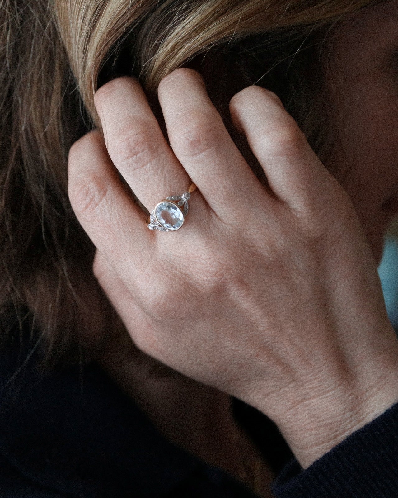 Cette gemme apporte une douceur lumineuse qui dialogue harmonieusement avec la monture, tout en soulignant la finesse du travail ancien. La bague Pernette devient ainsi une pièce singulière, où patrimoine et regard contemporain se rencontrent avec justesse.