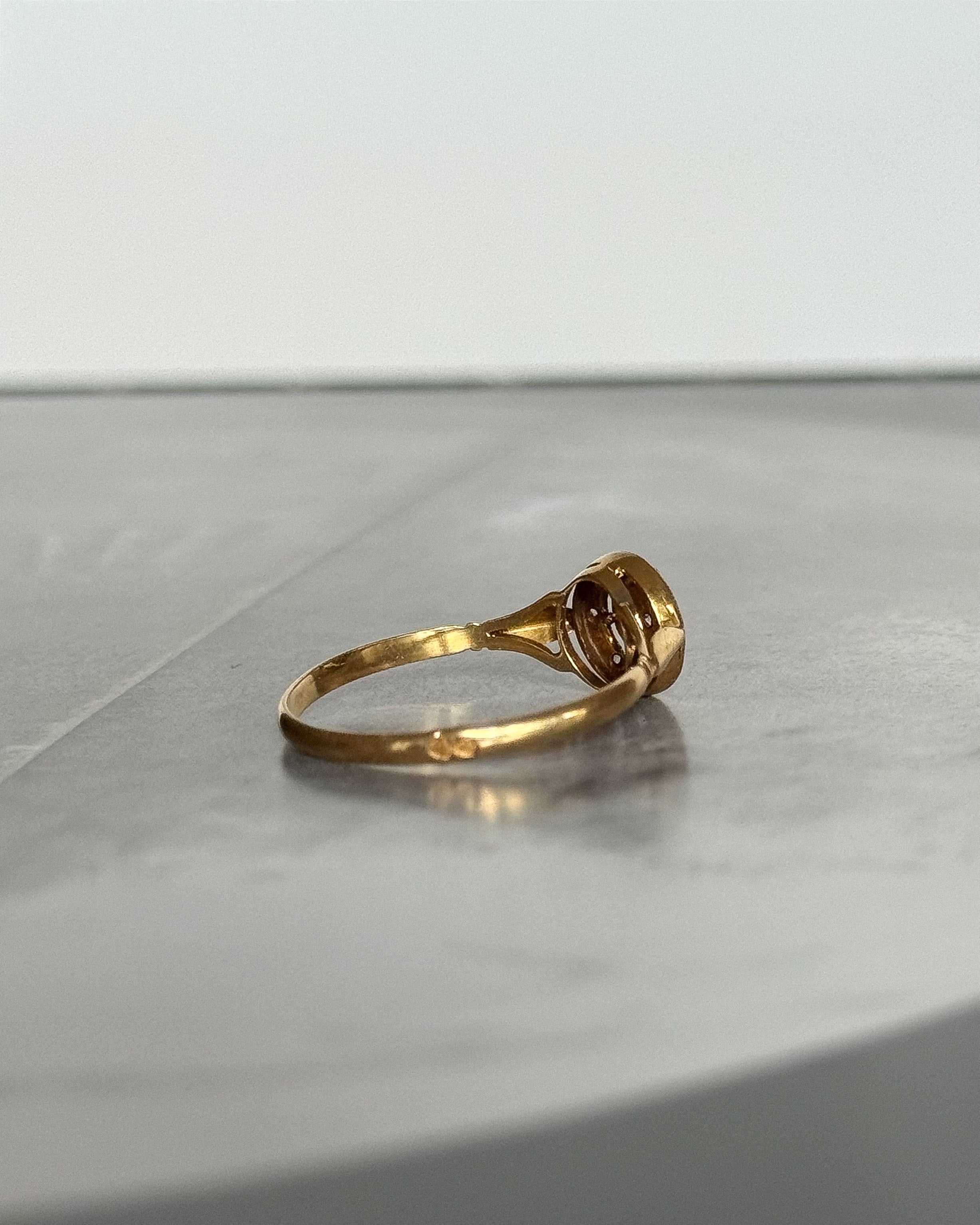 Les matériaux nobles et la qualité de fabrication révèlent un haut niveau d’exigence, destiné à une clientèle connaisseuse. La signature discrète, à peine perceptible, souligne l’authenticité de cette bague ancienne pour femme, conçue comme une pièce unique.