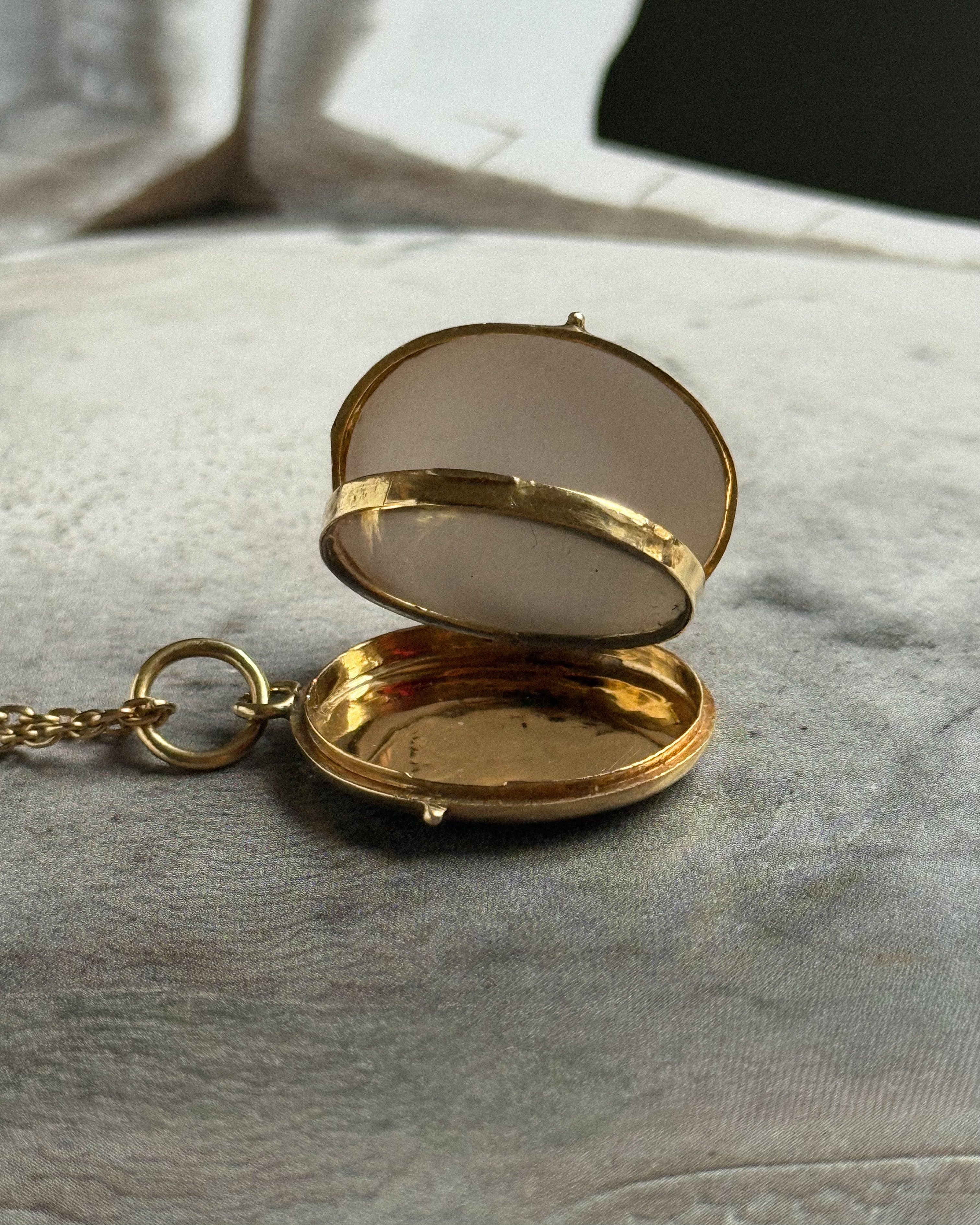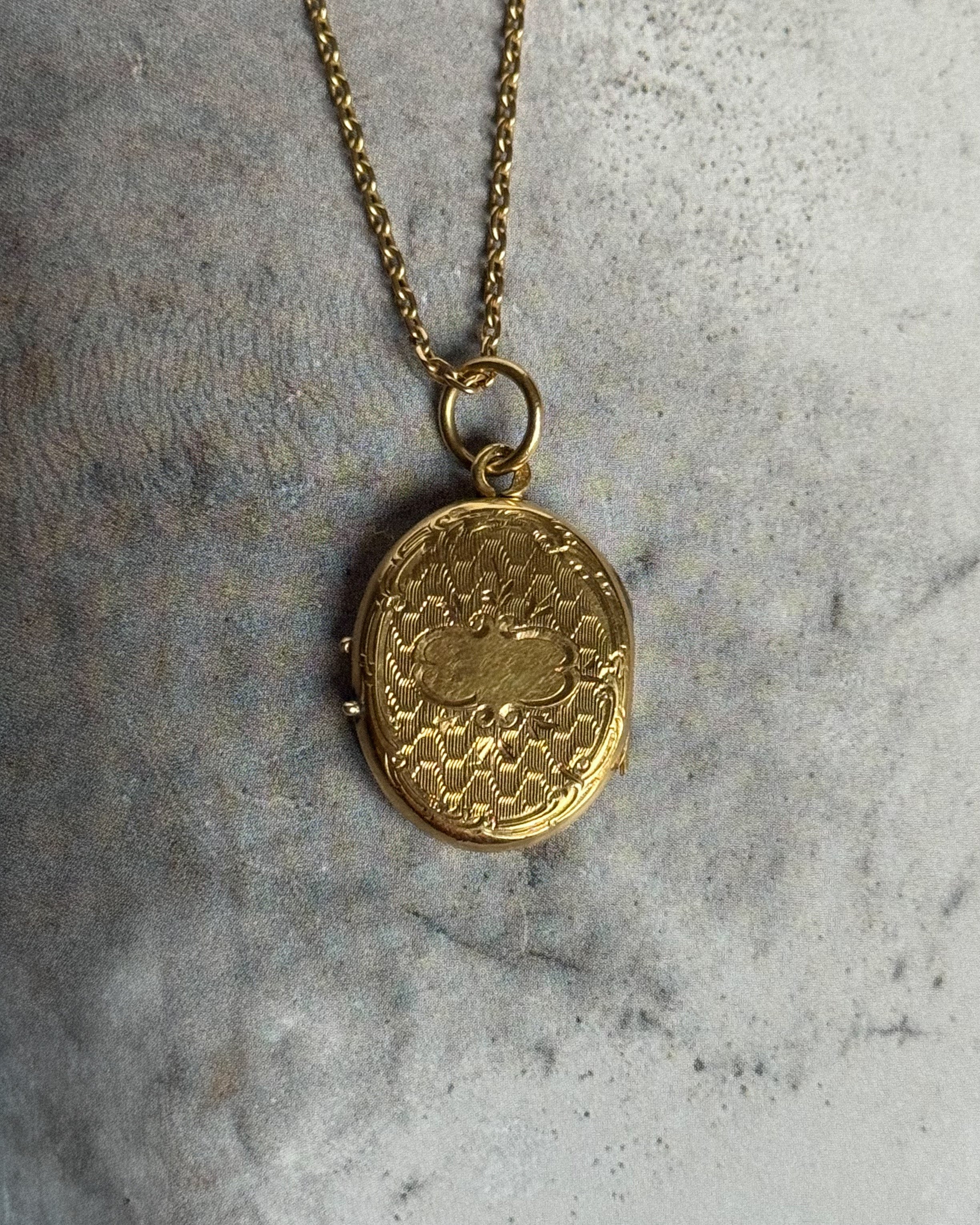 Ce pendentif est aussi un porte-souvenir : à l’intérieur, un compartiment discret accueille une photo, protégée par un verre d’origine, cerclé d’or. Ce type de médaillon, emblématique des bijoux sentimentaux depuis le XIXe siècle, permet de garder près du cœur un visage, une mémoire, une émotion.